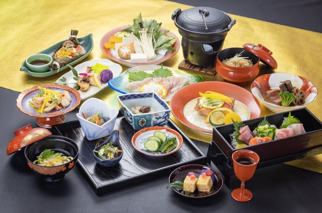梅酒・県産金目鯛はりはりサラダ・県産金目鯛なすはさみ揚げ 胡麻と味噌の香りを添えて・県産金目鯛みぞれジュレを添えて・県産金目鯛利休豆腐 シークワーサーポン酢の香りを添えて・県産金目鯛ポワレグリル 野菜を添えて・県産旬海鮮五種盛り・県産金目鯛しゃぶしゃぶ・県産野菜を取り入れた野菜盛り合わせ・県産金目鯛西京焼き・県産金目鯛昆布蒸し ゆずの香りとともに・県産金目鯛煮付け・鯛素麺・鯛めし・県産野菜彩り香の物・県産さつま芋羊羹浮島